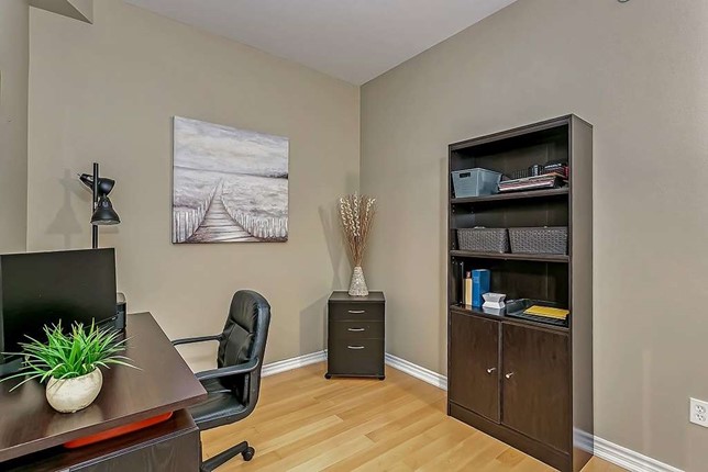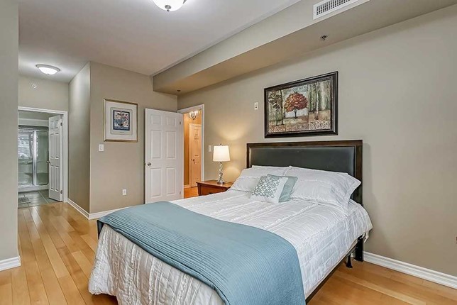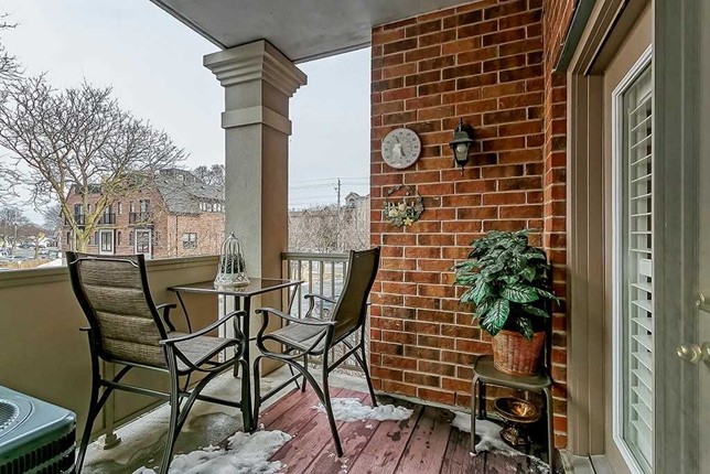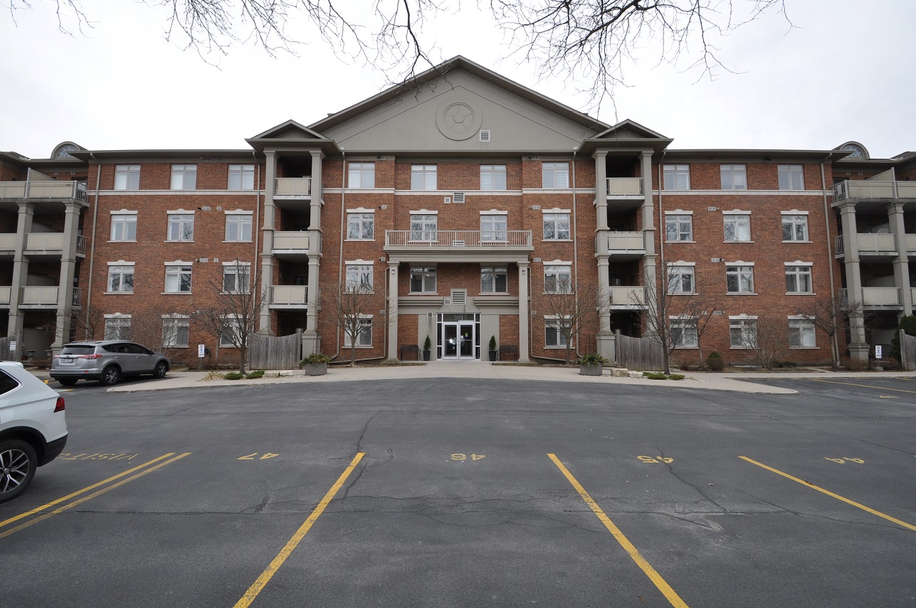 Upscale and spacious 3+1 bedroom condo in boutique building with 2 parking spaces, balcony and large storage locker. Locker directly behind parking. Suite features 9 ft ceilings, hardwood floors throughout, granite counters and California window shutters. Located on trendy Plains Rd, close to shops, restaurants, schools, Go station, golf course, Mapleview mall and waterfront.Listing Agent: