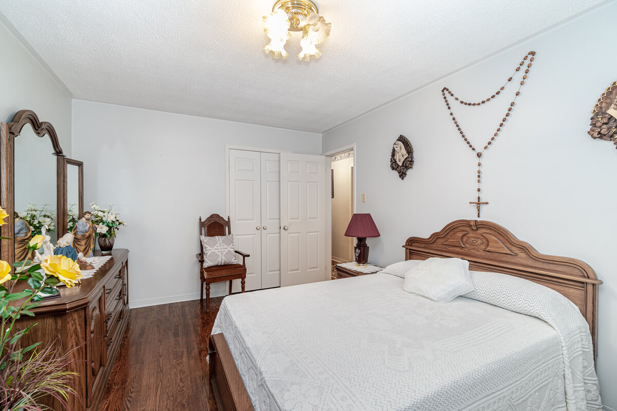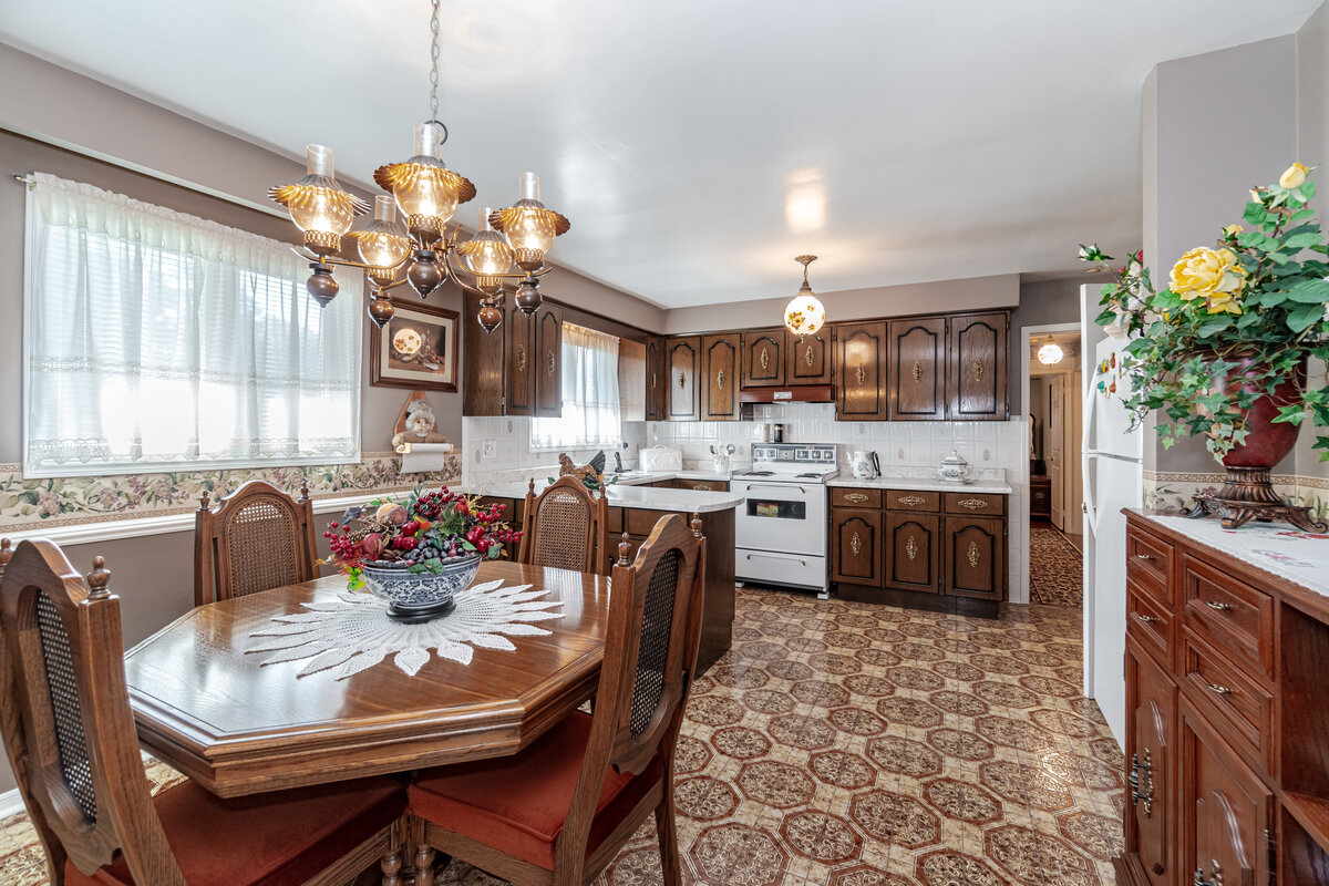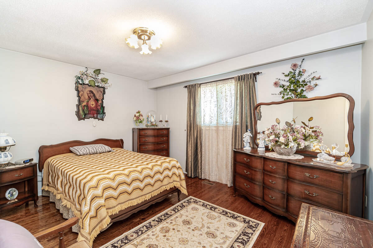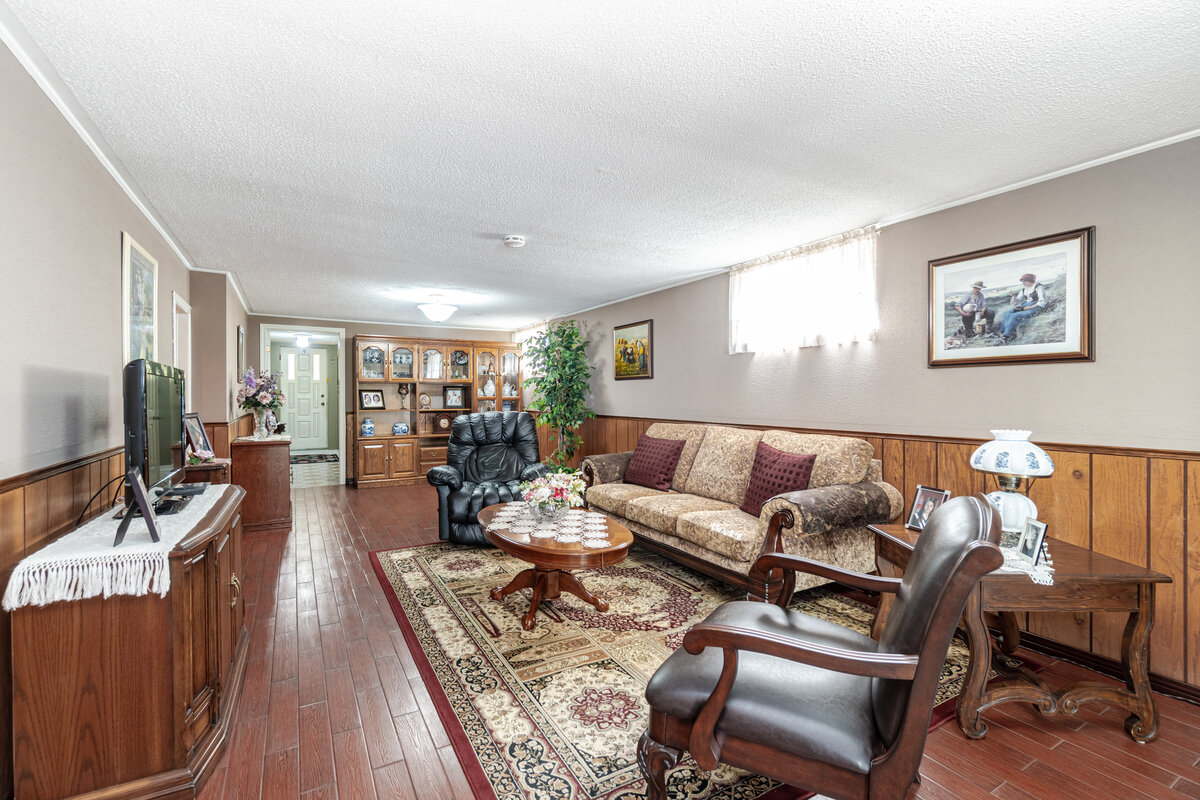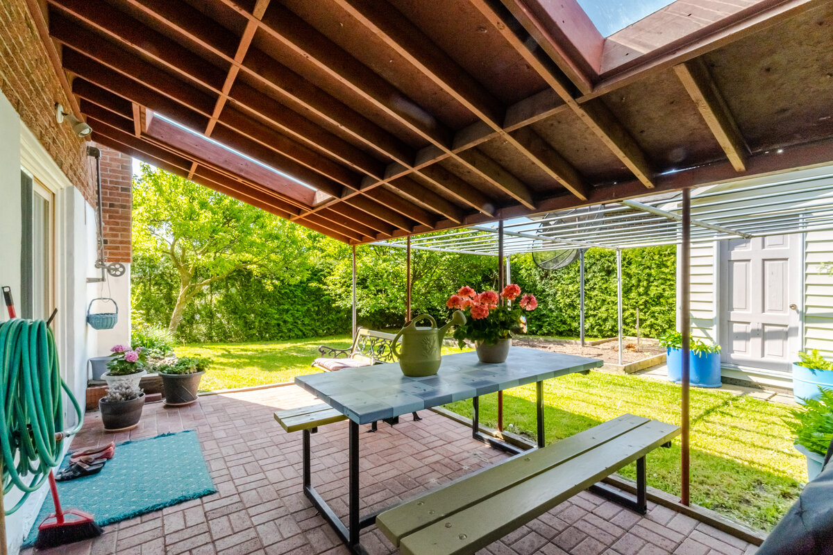 Immaculate semi raised bungalow, LARGE MODEL, on a beautiful corner lot. Meticulously maintained. Close to schools, parks, shopping, public transit. 3 spacious bedrooms, huge kitchen, 4 pc Bathroom, very spacious dining/living room combo with w/o to balcony. Finished basement w/ separate entrance, w/o to patio, eat-in kitchen, huge rec room, wood burning fireplace, 4pc updated bathroom, cantina & plenty of storage. CERAMIC & HARDWOOD floors throughout. Spectacular back & side yard w/ fruit trees, vegetable garden, patio & shed. This is an exceptional home.Listing Agent: