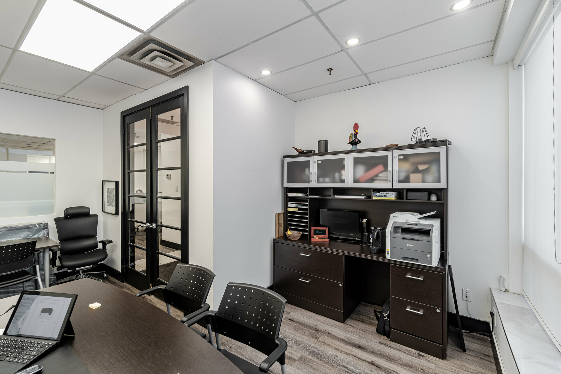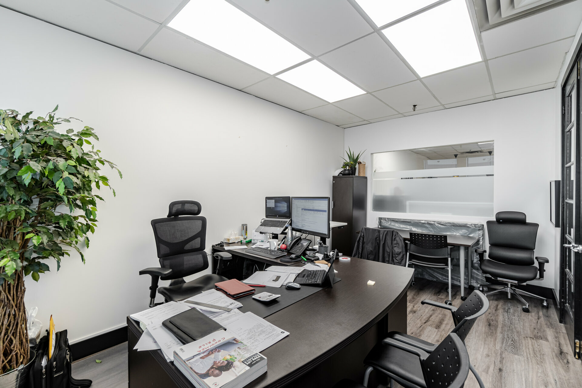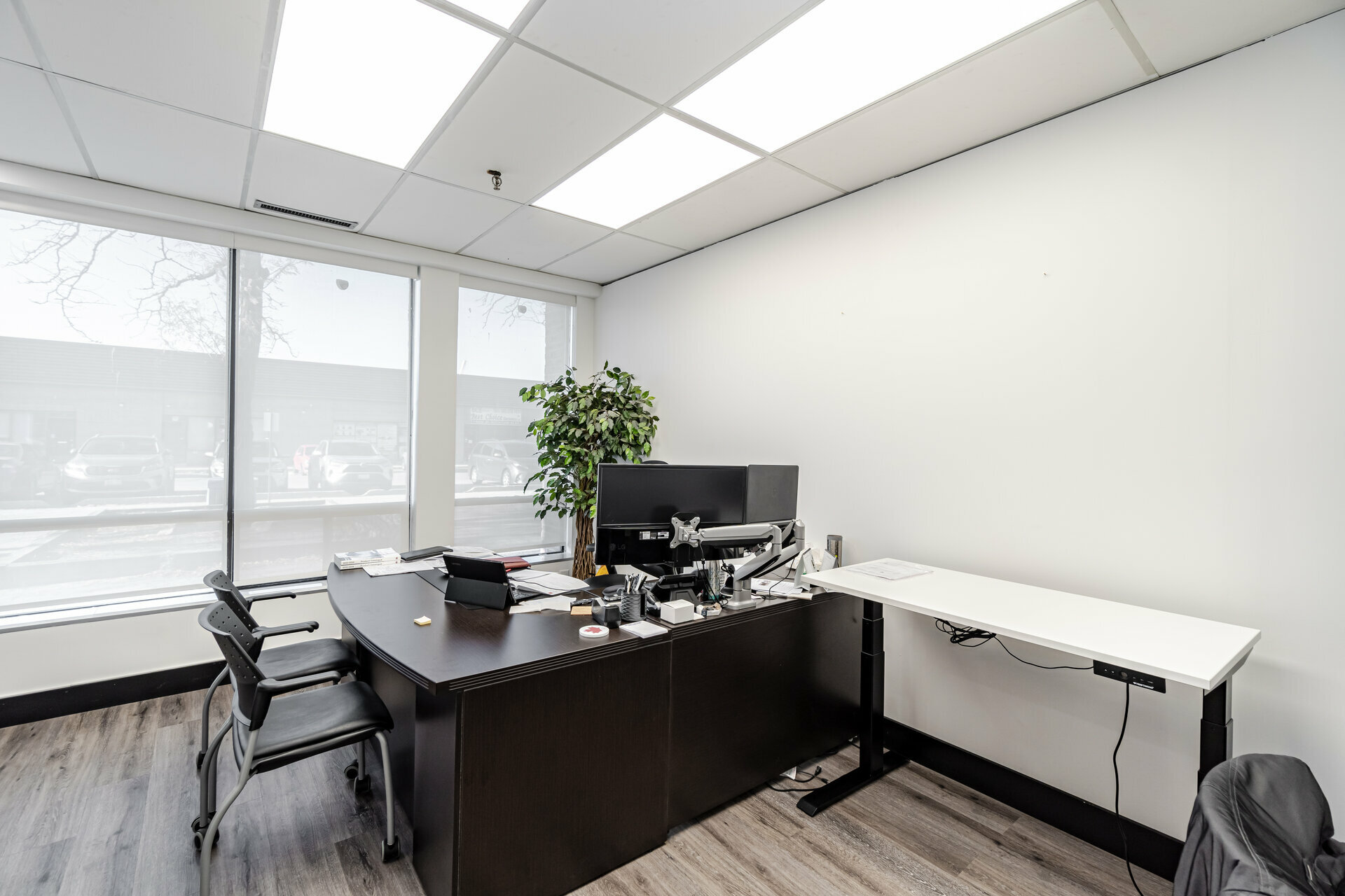 Fabulous and beautifully renovated/updated unit. Prime location near Airport and major highways. Spacious private front office. Open office work area. 3 pc bath, kitchenette, lunch room/office, computer room. Warehouse and receiving area. Mezzanine (320 sq ft), same size as warehouse, not included in the total area. Truck level door and man door at the back. Zoning allows for many uses including: office, warehouse, manufacturing.Listing Agent: