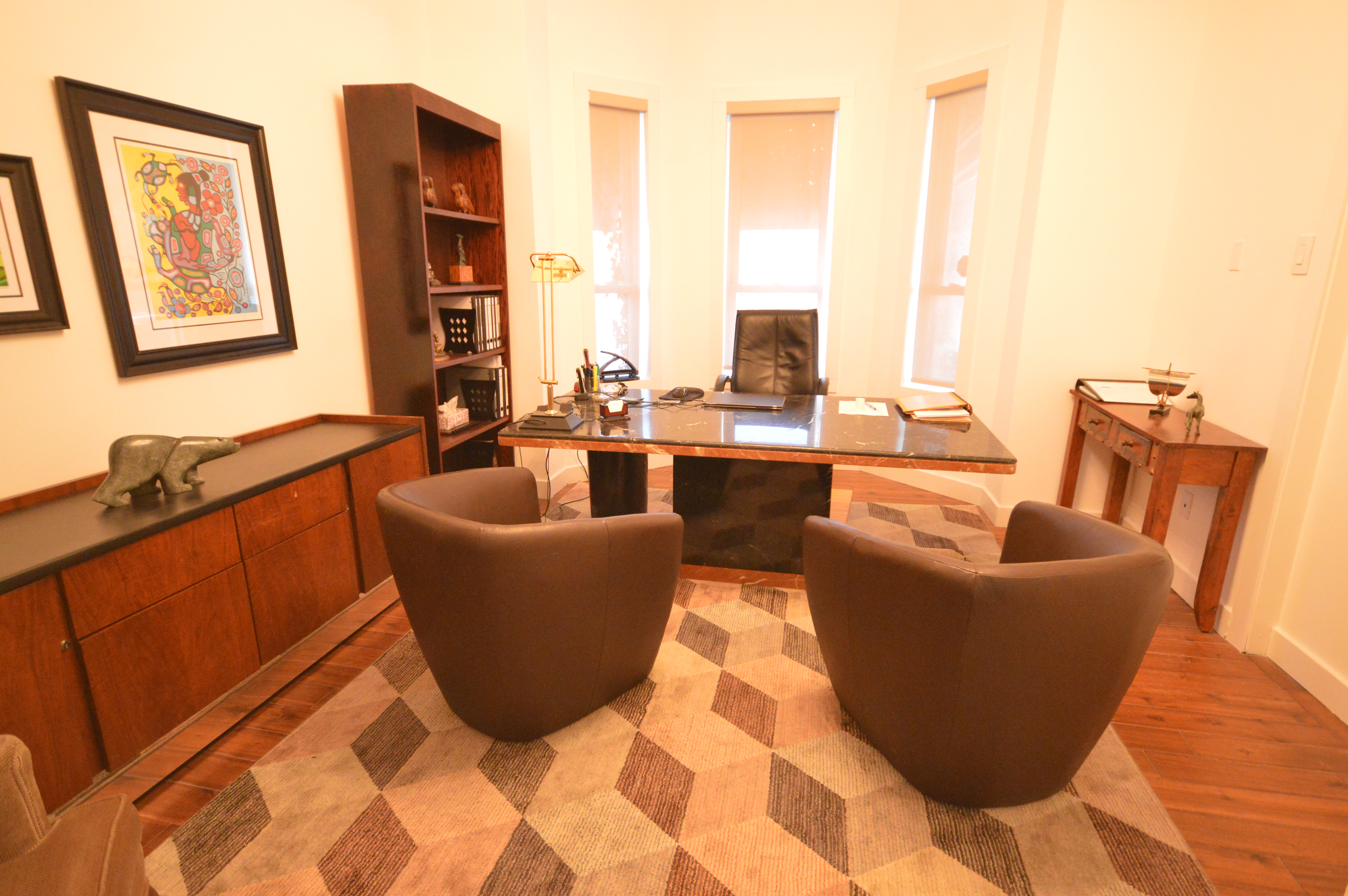 Unique and professional Victorian Heritage designated building in the heart of downtown Brampton. Fully renovated with grade A finishes. Corner property with an excellent street exposure; 12 foot ceilings; 1 parking designated spot; nearby FREE parking at George Street, City Hall parking lots and on Market Street. Paid parking on Main Street North. Walking distance to all commercial amenities + go train and bus terminal. Adjacent to the Bristol Place (a Solmar development of 2-48 storey towers comprising 1,146 residential units). Perfect setup for a "low traffic business" such as Lawyer(s), Accountant(s), Paralegal(s), Bankruptcy Trustee, Immigration Office and/or financial services. In addition to the monthly rent, tenants shall also be responsible for 1/2 of the utilities (gas, water and hydro). Internet is included in the rent. Additional space of +/- 450 sq.ft. (storage) in the basement free of charge. 3% rent increase for years 2 and 3. Rental of furniture is possible (if needed), as space is fully furnished. $9.00/sq.ft. for TMI + HST (base rent and TMI). Plus 1/2 of all utilities.Listing Agent:
